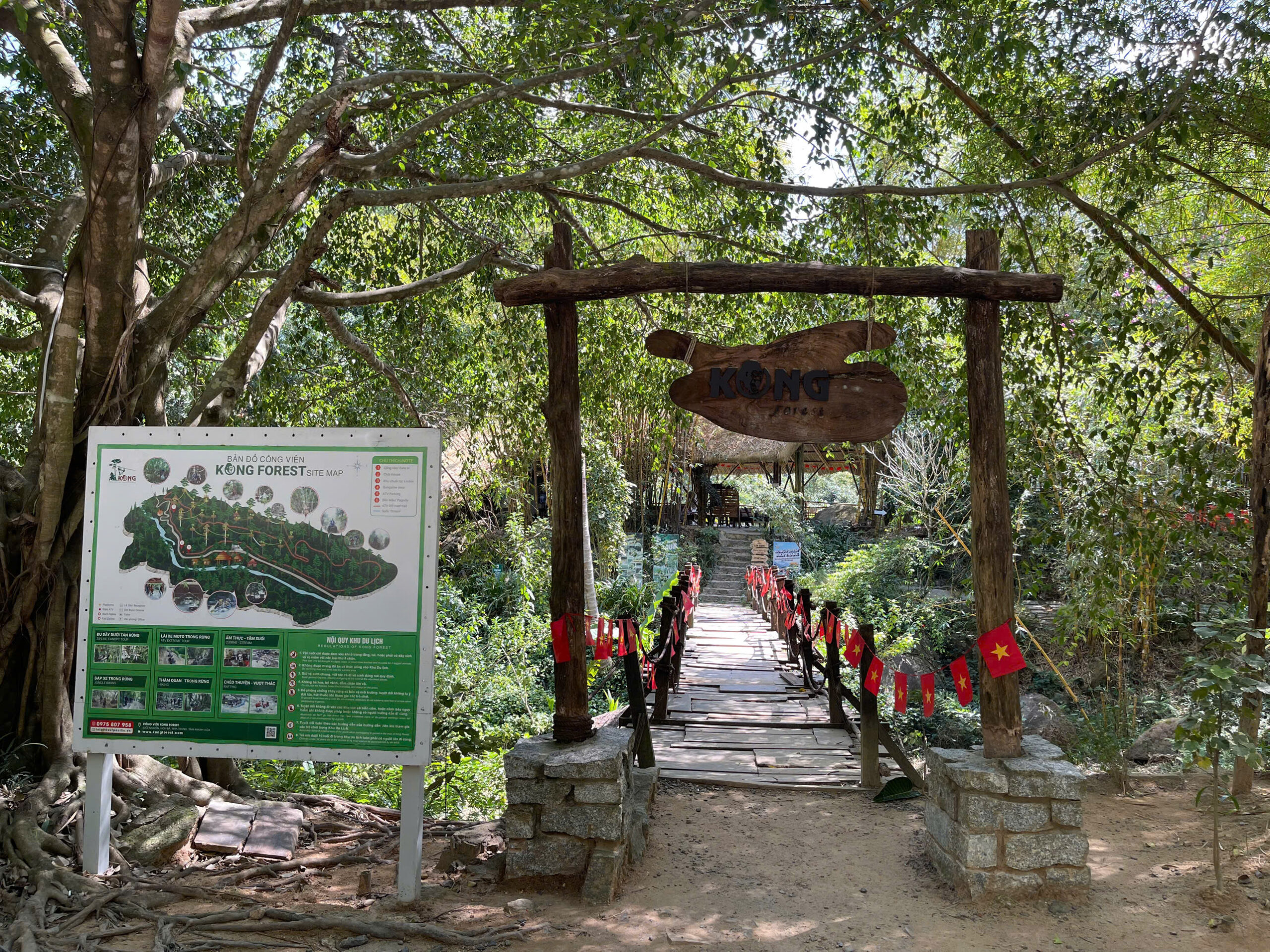 Trên đường đến với chùa Trúc Lâm Hòn Bà bạn sẽ gặp KONG FOREST- Công viên thám hiểm tại Km19 . Đến đây bạn có thể dừng nghỉ tham quan và uống cà phê có view suối cực đẹp